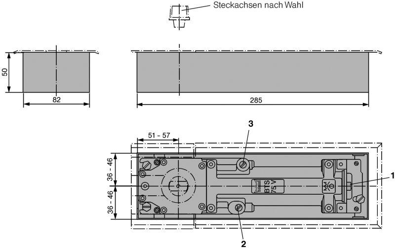 Bodentürschließer BTS 75 V EN 1-4,90°,mit Zementkasten, mit Steckachse - dormakaba-2