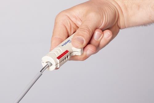 Rundkabel-Entmanteler, Nr. 460140Kunststoffgriffteil hohl, mit festen Messern. Für alle gängigen PVC-isolierten Datenkommunikations- und Steuerleitungen (z. B. IBM Typ 1; 2 etc.).