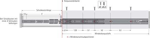 • Bei Nennlänge 300 beträgt der Auszugsweg nur 290 mm