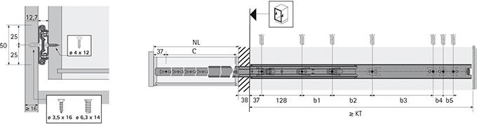 Kugelauszug KA 4932, 12,7 mm Einbaubreite, 400 mm - Hettich-2
