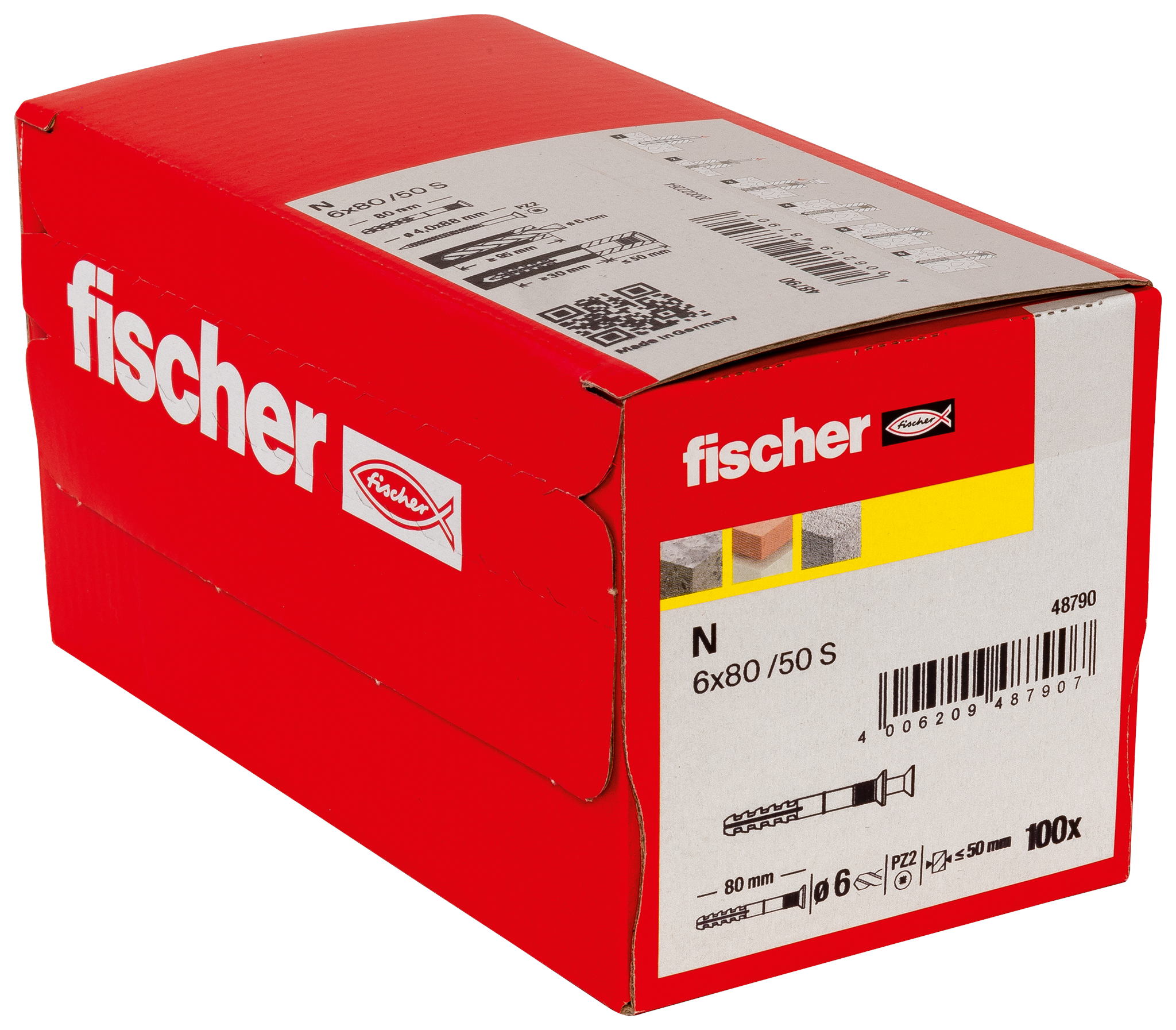 Der fischer Nageldübel N-S mit Senkkopf besteht aus einem hochwertigen Nylondübel und einer Nagelschraube aus galvanisch verzinktem oder nicht rostendem Stahl. Diese sind für eine schnelle Montage bereits vormontiert. Der Nageldübel wird in der zeitsparenden Durchsteckmontage durch das Anbauteil eingeführt. Beim Einschlagen der Nagelschraube spreizt die Dübelhülse auf und verankert sicher im Baustoff. Der fischer Nageldübel N-S mit Senkkopf ist ideal für die Befestigung von Holzkonstruktionen, Putz- und Wandanschlüssen sowie Kabel- und Rohrschellen in allen Baustoffen.