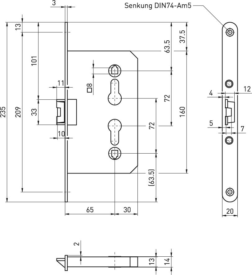 Stahltür-E-Schloss 20 rd verzinkt LS/RS Nr. 1839/65/8/72 PZW - BMH