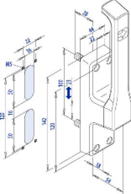 für verdeckt laufende Verriegelungsstangen, mit je 2 Schließblechen Nr. 263 und 261, ohne Stangen, Abbildung links, passend zu Rund- und Vierkantstange, passende Gewindeansätze Bestell-Nr. 35051270