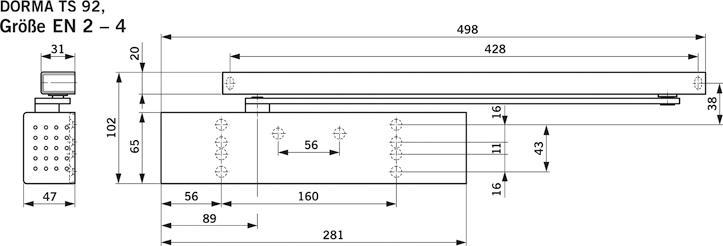 Die Schließgeschwindigkeit des TS 92 Basic ist über Ventile in zwei voneinander unabhängigen Bereichen stufenlos einstellbar. Die Schließkrafteinstellung für die jeweilige Türbreite erfolgt beim TS 92 Basic stufenlos über die seitliche Stellschraube.